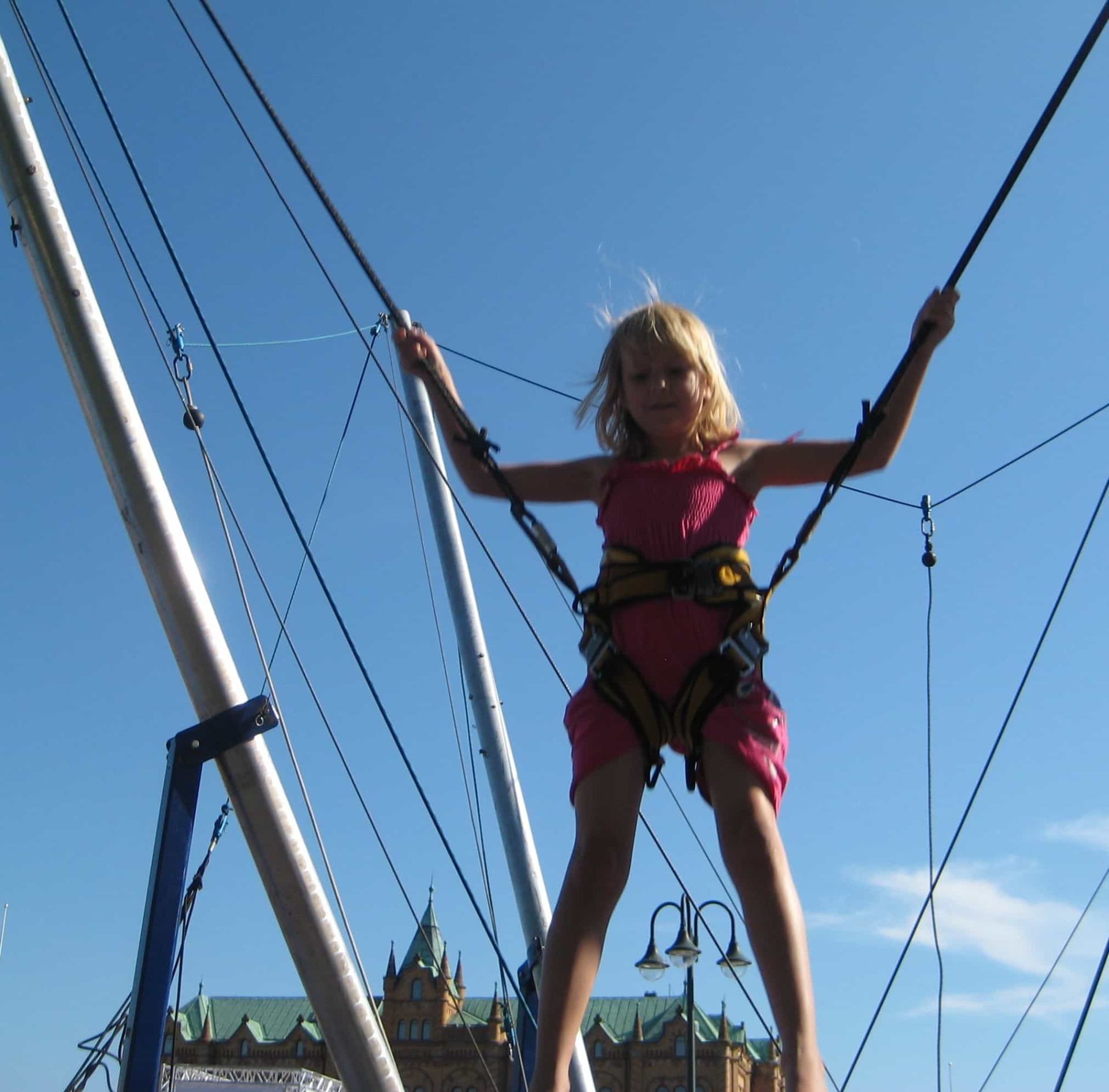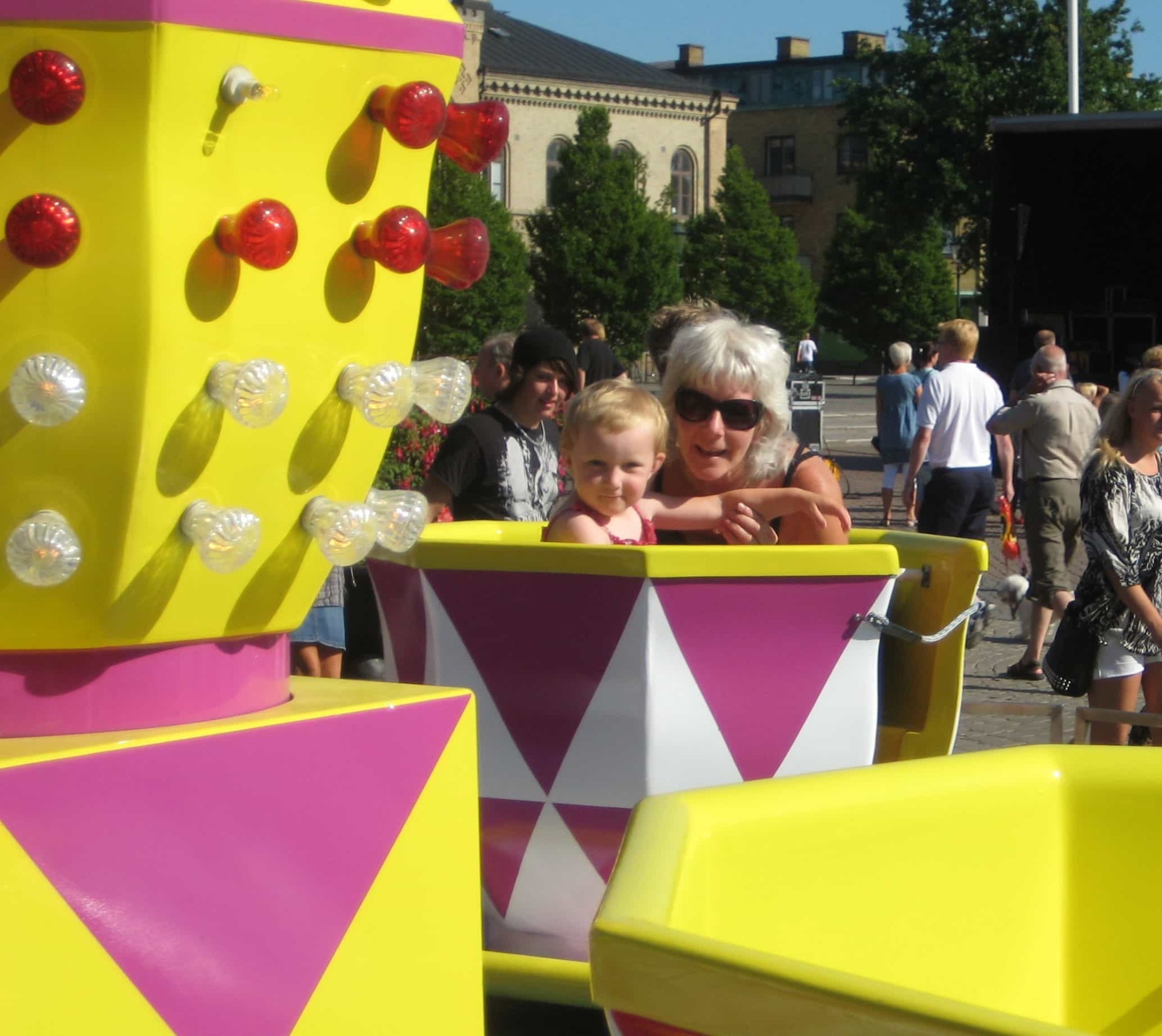 Vi bodde på Stadshotellet som ligger på torget i Varberg. Denna helg hade de karuseller och studsmattor utanför hotellet.
