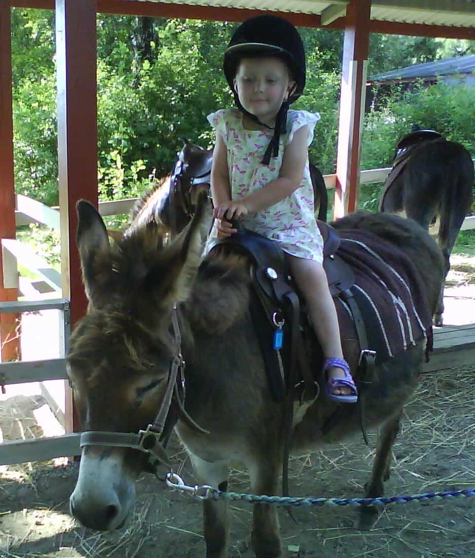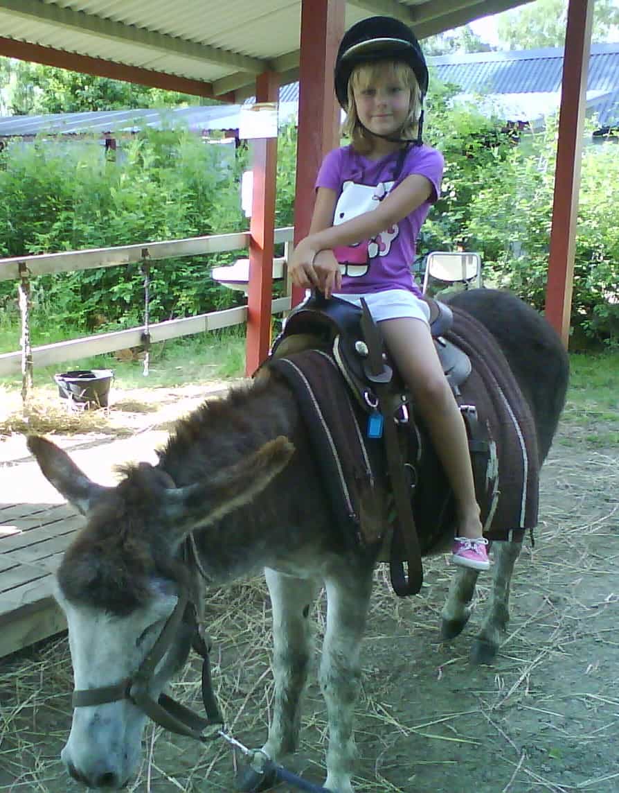 Där provade ni på alla karuseller. Ni fick prova rida på åsnor och vi var in och bada i vattenlandet bland rutchkanor.